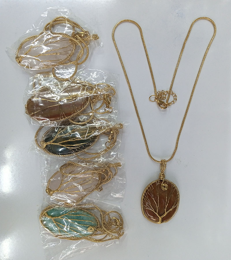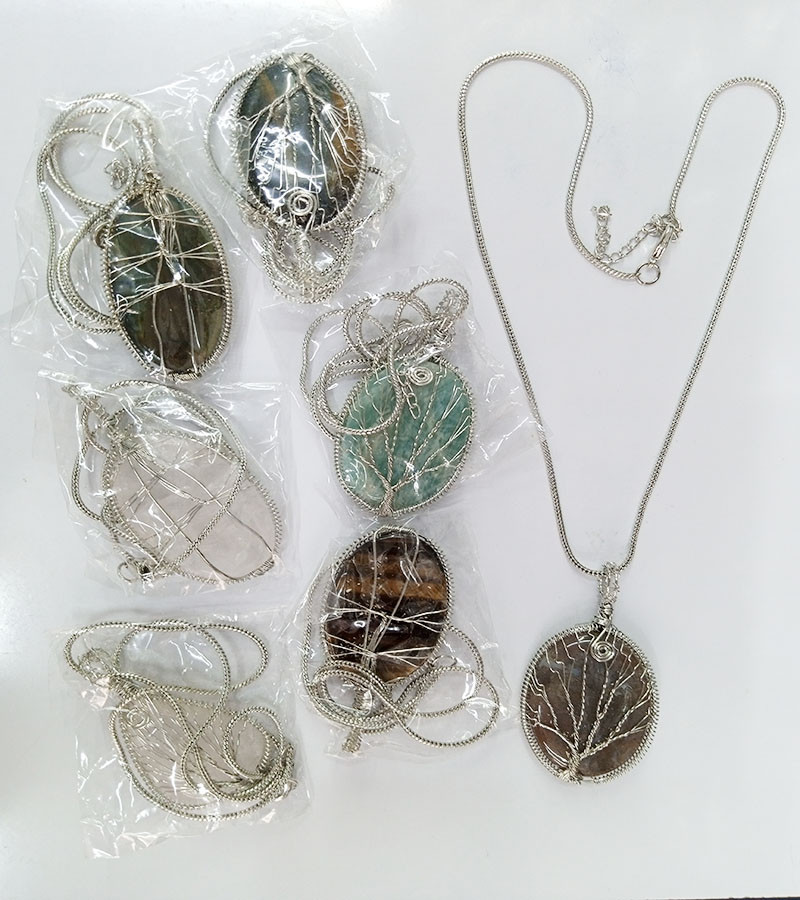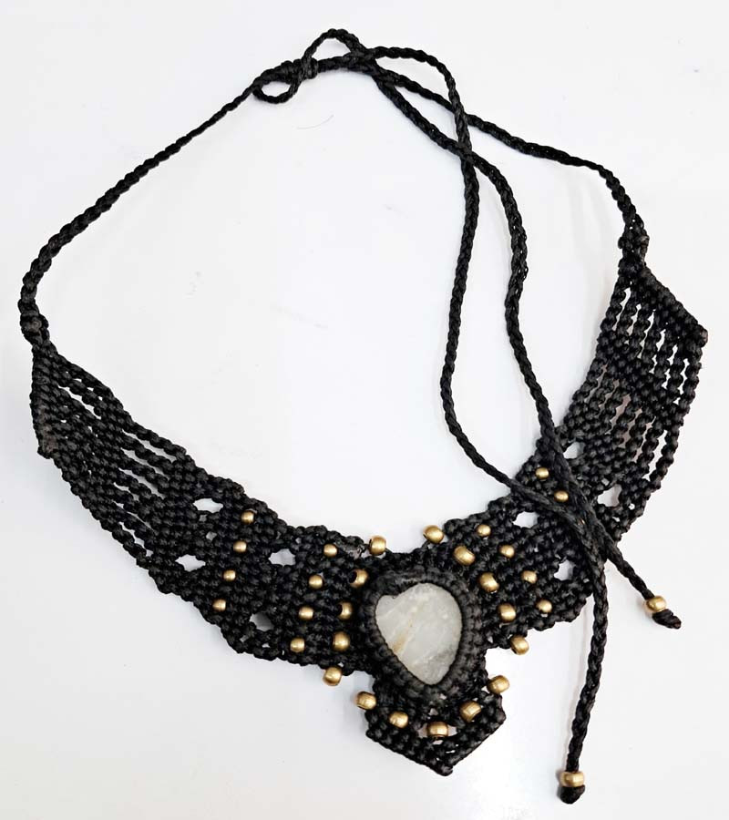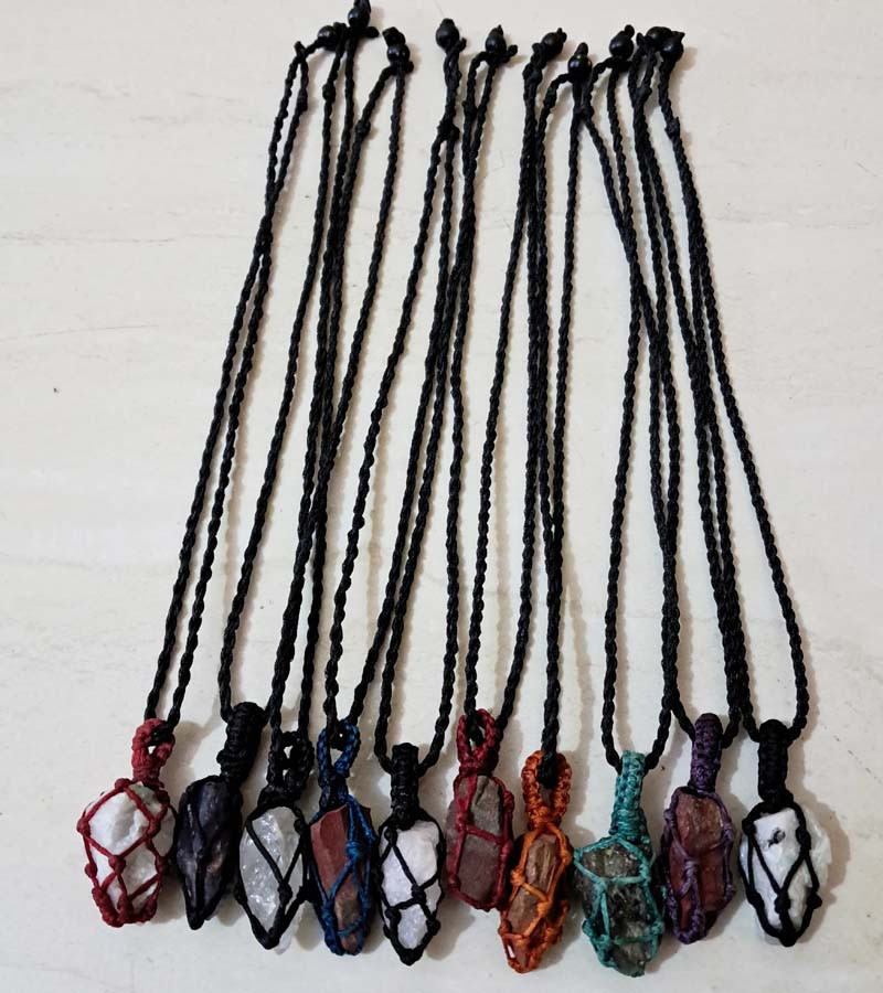 natural stone pendant thread work necklace